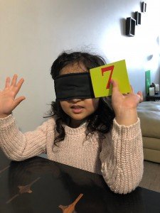 - Identification of colours and Numbers with blind fold.